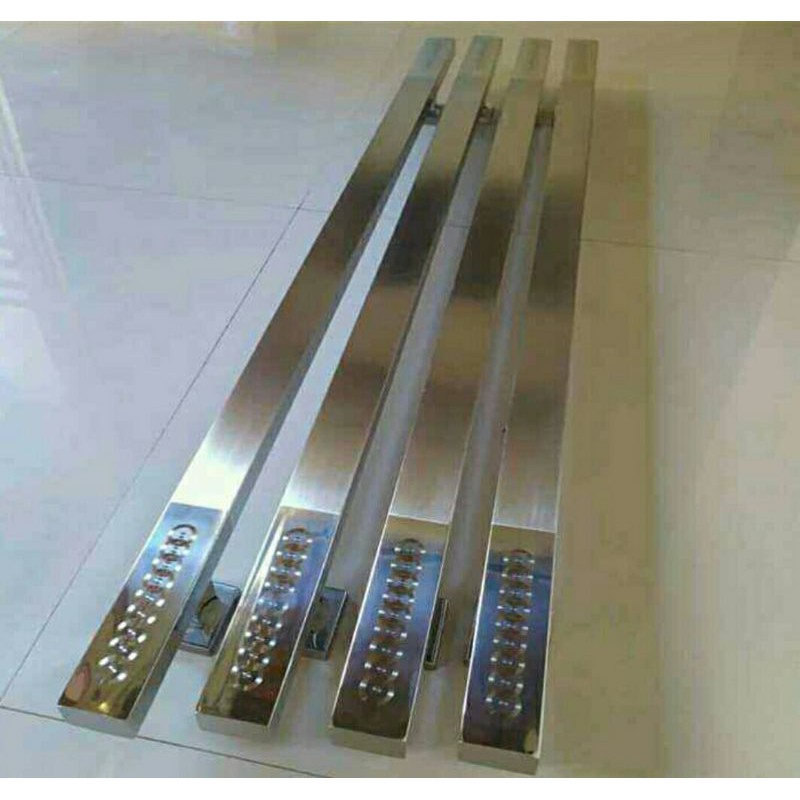 Harga tsb 1 pasang (2pcs) handle.panjang 80cm.bahan full stainless 304.tebal 2cmx4cmlengkap dengan skrup baut pemasangan.Anti karat kuat dan tahan lama.cocok untuk semua jenis Pintu.kualitas terjamin.langsung TRANSAKSI saja kak.melayani COD.ready stok.produksi sendiri.tidak pernah menolak pesanan.MENGUTAMAKAN KEPUASAN PELANGGAN.DIJAMIN AMANAH.
