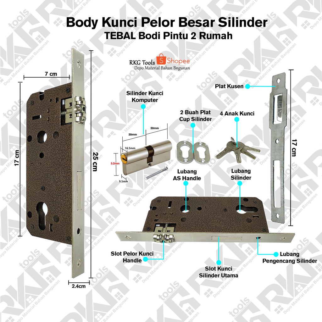 Name: Body Kunci Pelor Besar Silinder Tebal Bodi Pintu 2 Rumah