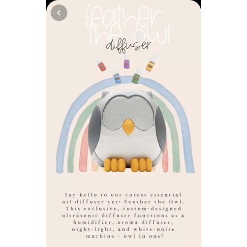 DIFFUSER YOUNG LIVING YL FEATHER OWLDi saat pandemi ini, diffuser termasuk banyak yang dicari orang, tidak hanya sebagai pewangi ruangan alami tetapi juga untuk membersihkan udara, merelaksasi, membantu pemulihan stress, dan gangguan kondisi tubuh lainnya..Diffuser Young Living berbeda dari diffuser lain karena bekerja dengan memecahkan partikel oil sampai ke nano partikel (atomizer), yang kemudian disebarkan ke udara, untuk bisa membantu membersihkan udara dan juga masuk ke tubuh kita melalui hidung dan kulit.. sehingga uap oil yang dikeluarkan mudah meresap ke dalam tubuh dan manfaatnya dapat dinikmati orang yang di dalam jangkauan.. Spesifikasi :kapasitas air 150mldaya nyala up to 10jam (intermitten), 8jam (low mode), 5jam (high mode)internal speaker with 5 music white noise : burung, hujan, ombak, angin, pianoarea jangkauan 30m persegi10 pilihan warna lampuoriginalnewasligaransimurahkami tidak hanya menjual produk disini, jadi mohon tanyakan stock dulu ya sebelum check out..Happy sho